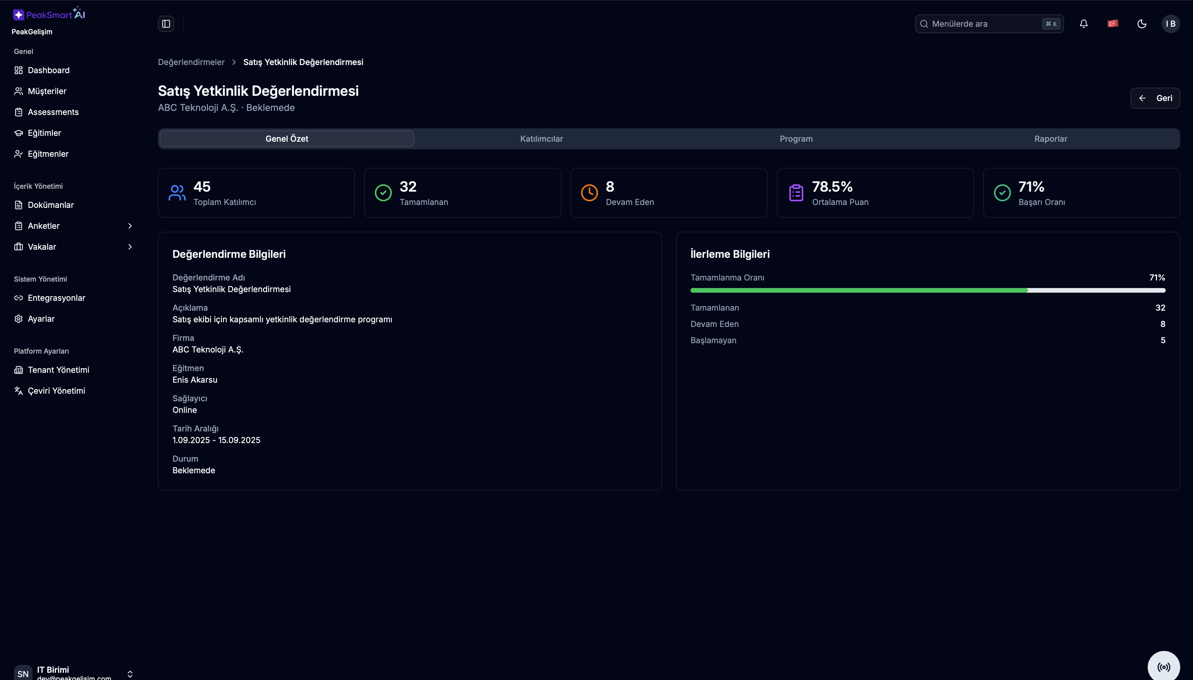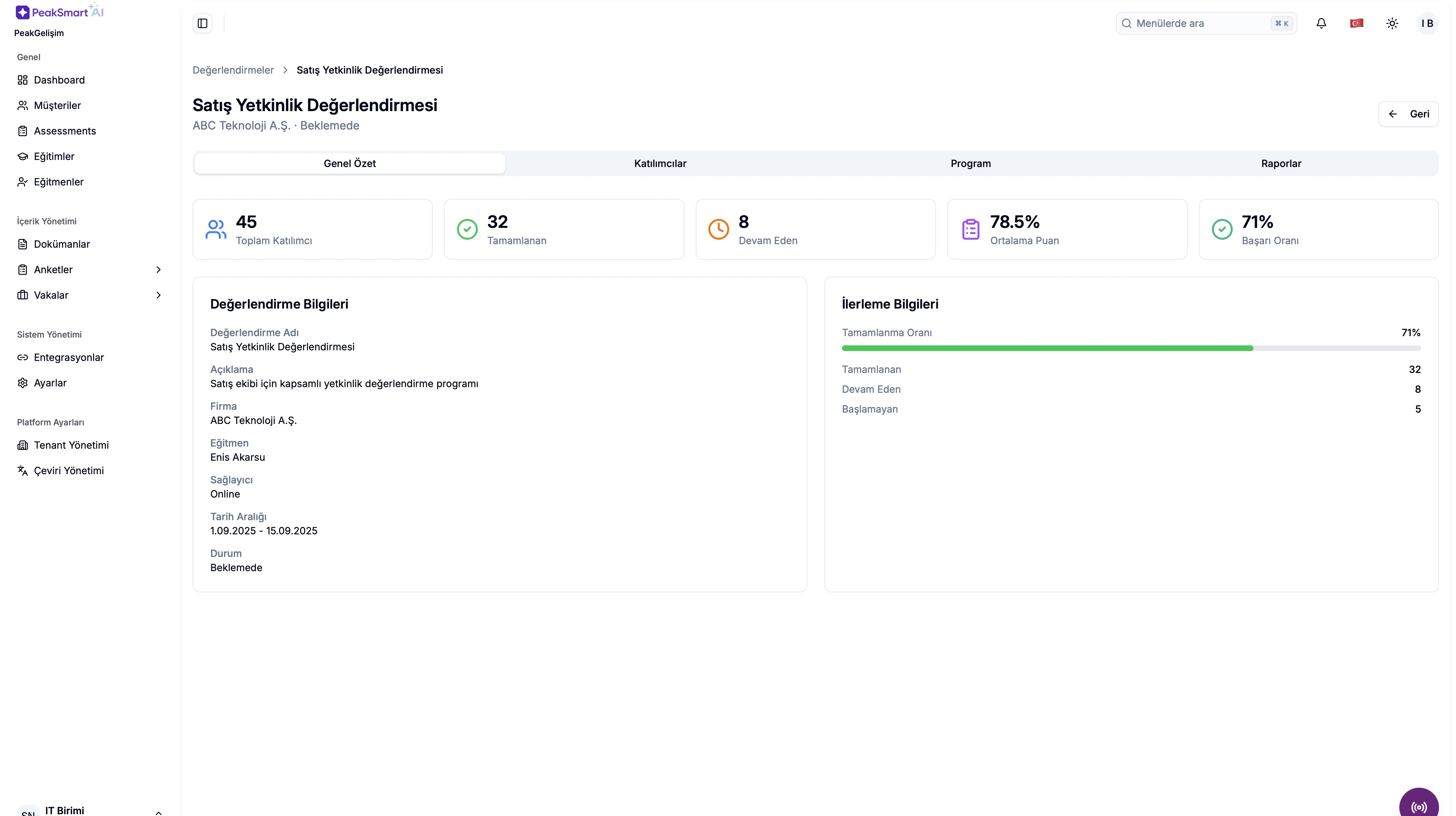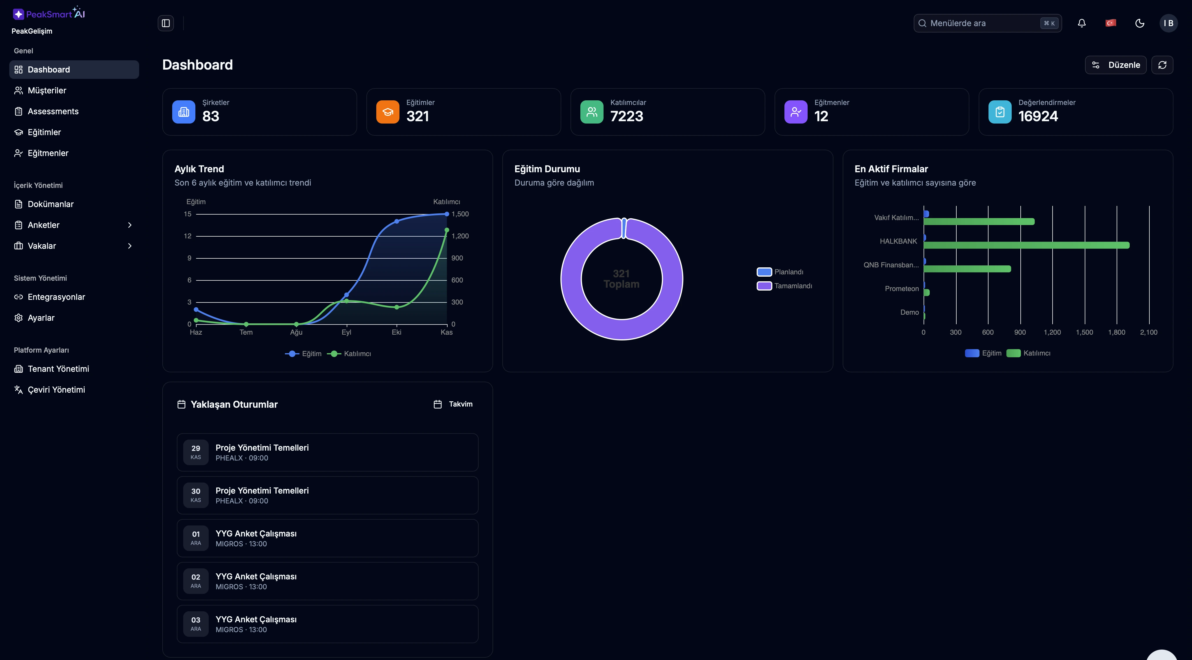 @peaksmart.ai sayesinde eğitim süreçlerimizi ilk kez bu kadar net görüyoruz. Katılım, değerlendirme, yetkinlik... Hepsi tek ekranda.