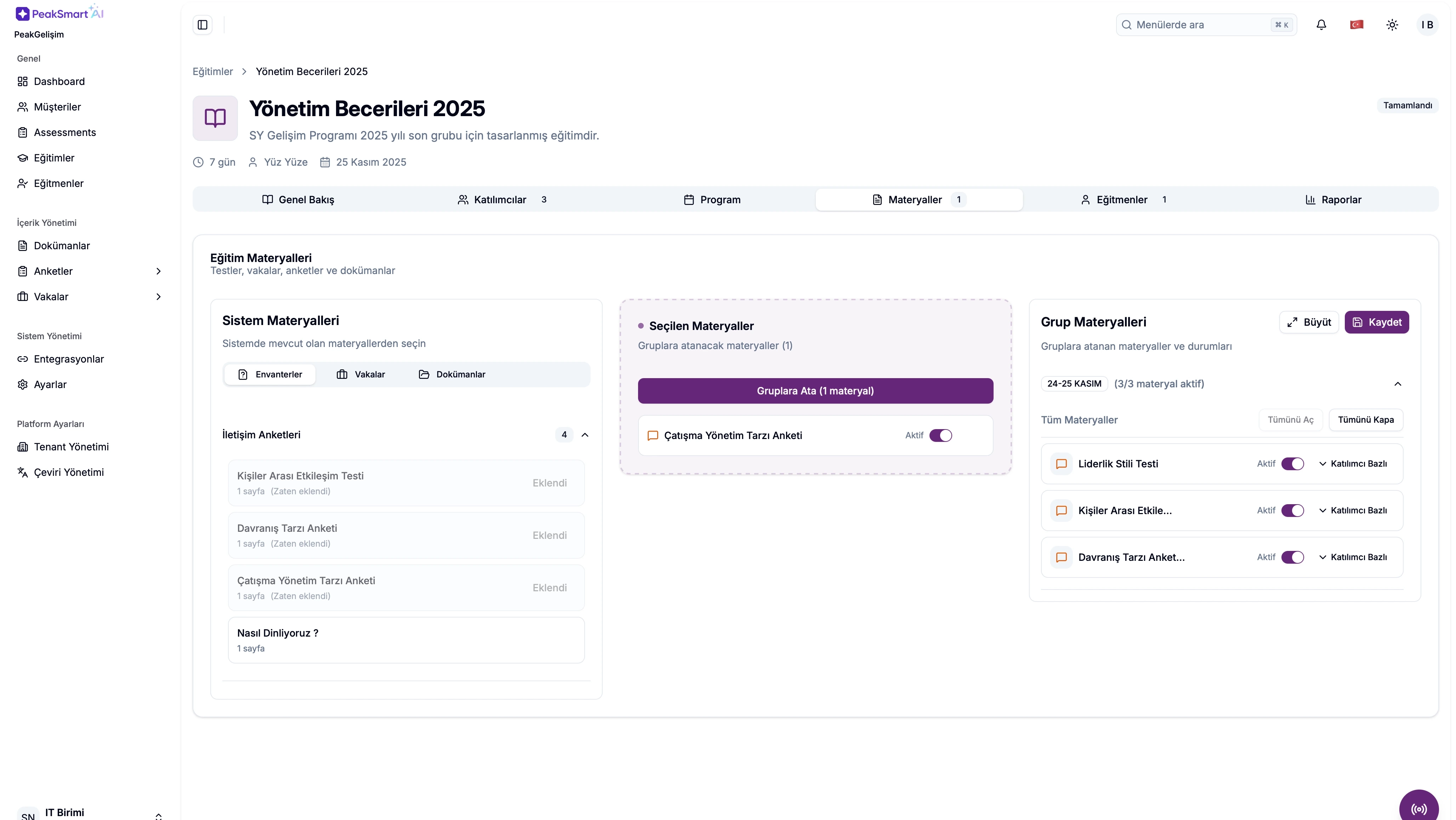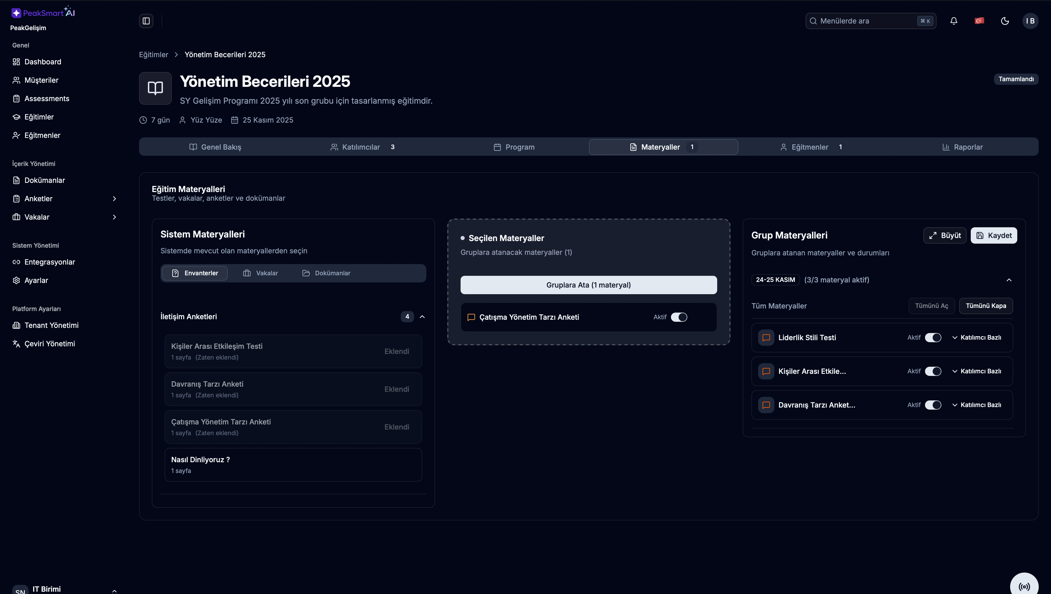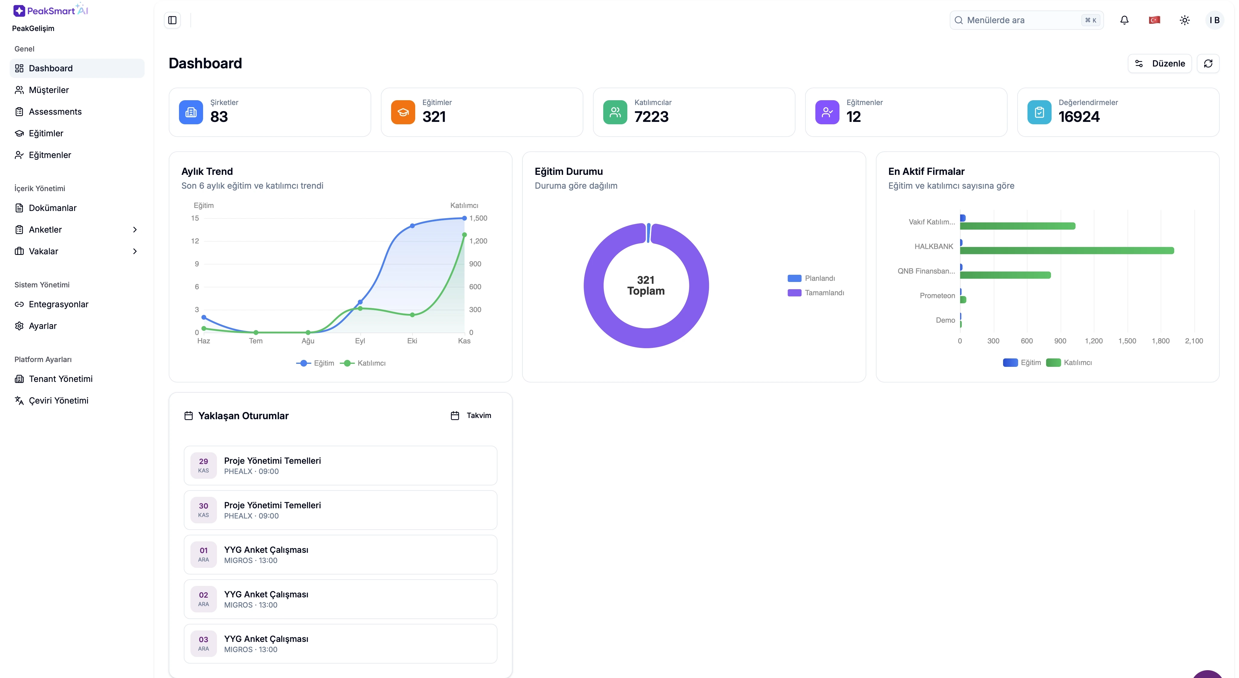 @peaksmart.ai sadece eğitim listeleyen bir sistem değil, eğitimin işe yarayıp yaramadığını gösteren bir karar destek aracı.